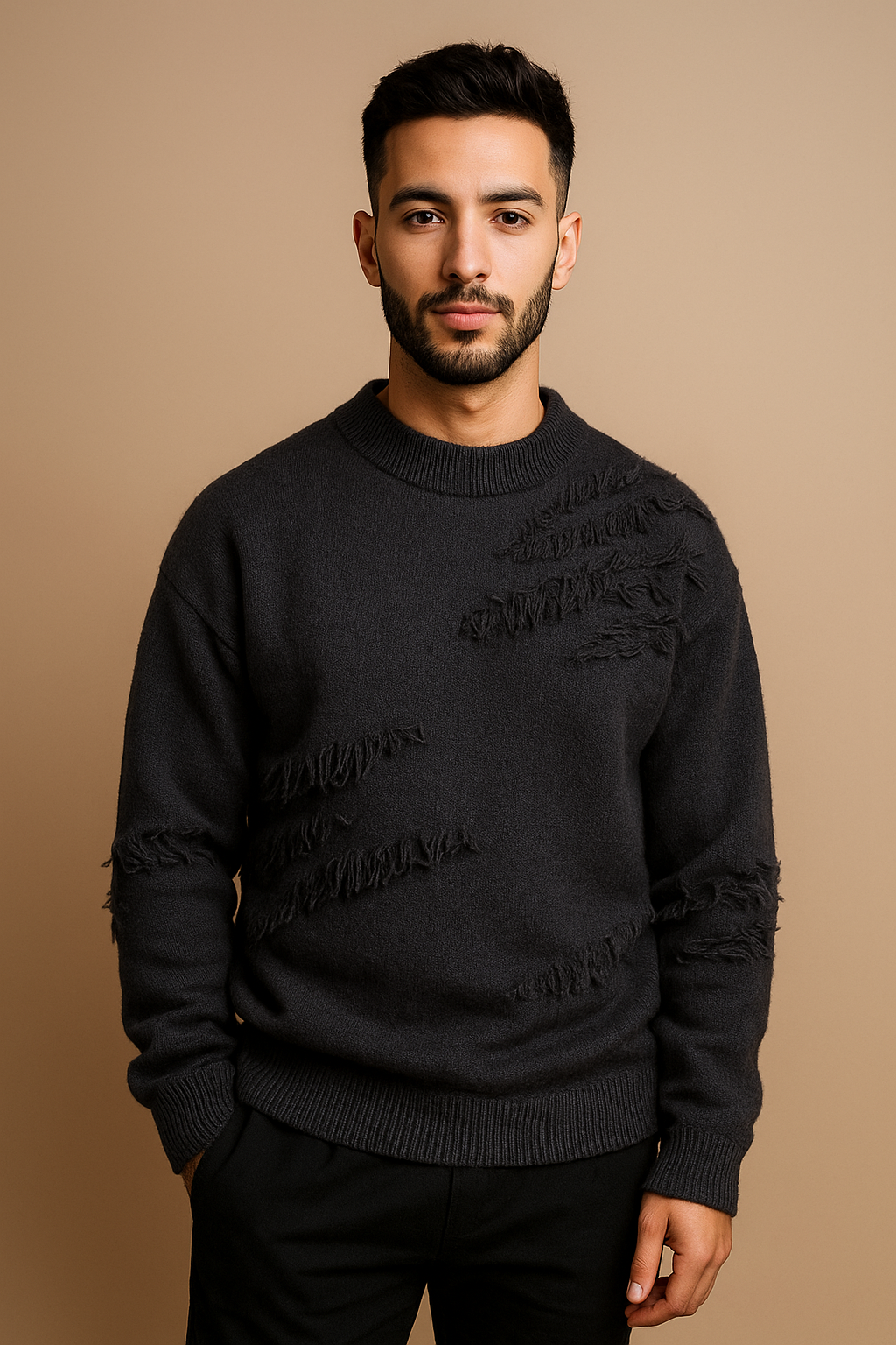 Moderno, audaz y con total comodidad — el Suéter Ripped Edge está diseñado para hombres con un estilo urbano y contemporáneo. Sus detalles “ripped” y su tejido grueso aportan una vibra fuerte y moderna sin perder elegancia. Combínalo con jeans o pantalones cargo para un look urbano sin esfuerzo.